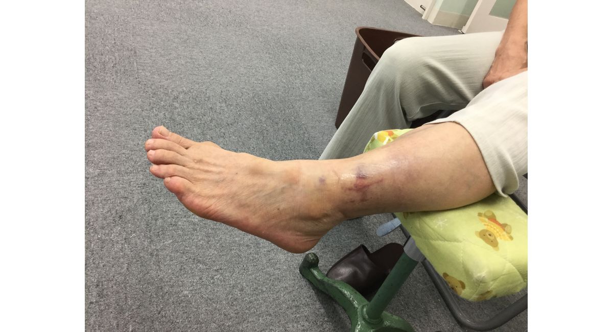今日は階段で転倒してしまった患者様が来院されましたので紹介いたします。この方はもともと通院されていてその時も足首の痛みで来院されていました。今回また同じ部位を捻ってしまいとても悲しそうにいてました。
